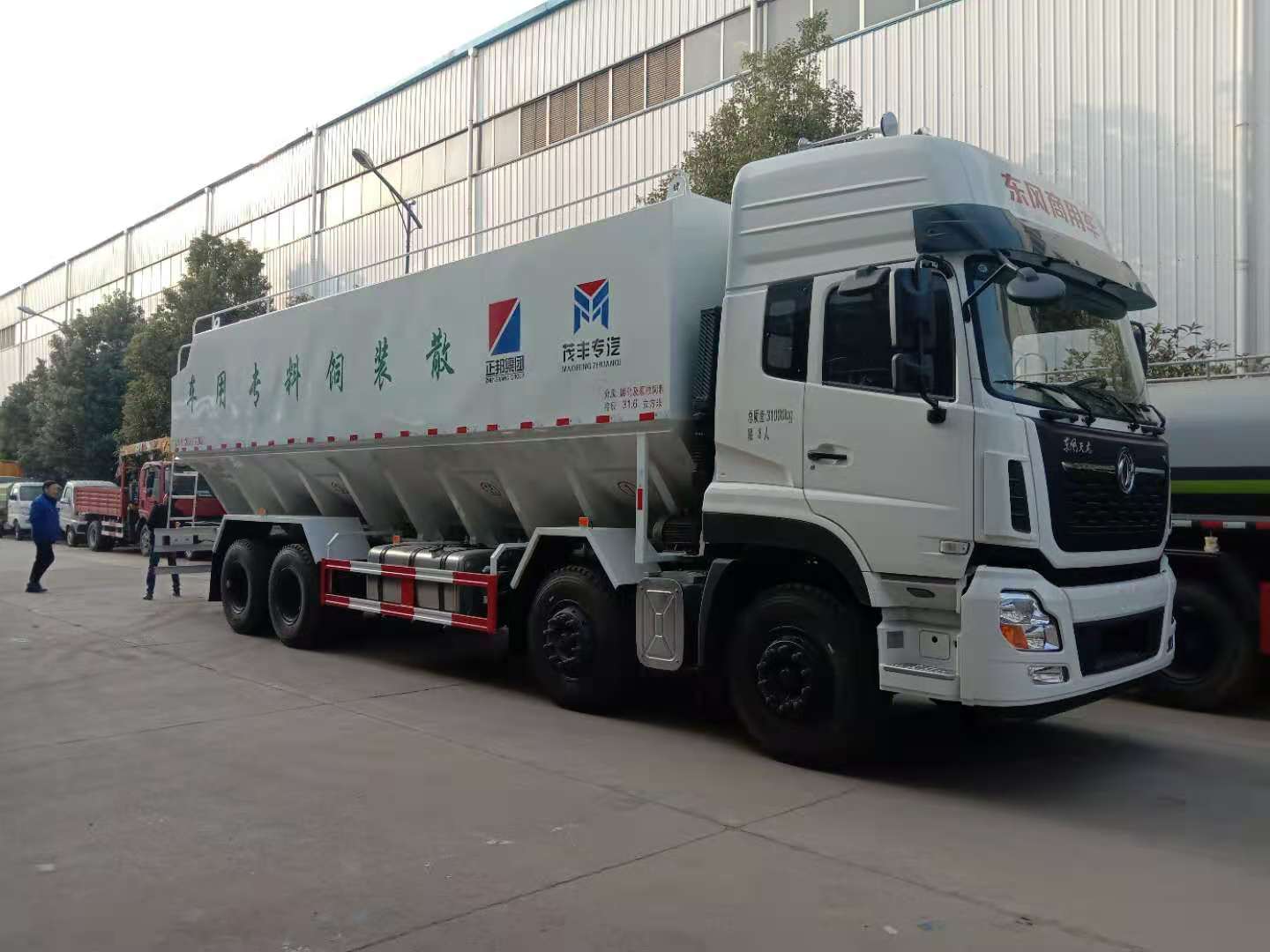東風(fēng)天龍前四后八高頂雙臥新款豪華駕駛室,康明斯6缸315馬力/雷諾350馬力發(fā)動機(jī),法士特12檔變速箱,1850+4600+1350mm/2050+4400+1350mm軸距,11.00R20鋼絲胎,電動門窗,中控門鎖,原廠空調(diào),ABS,方向助力,行車記錄儀,氣囊座椅,斷氣剎;上裝罐體容積約40立方,罐體采用4mm優(yōu)質(zhì)碳鋼板制作,罐體內(nèi)分為肆個(gè)倉,可獨(dú)立控制各分倉卸料順序和速度,整車3條蛟龍(底部水平絞龍、尾部垂直絞龍、頂部卸料絞龍),由3個(gè)5.5kw 380v電機(jī)帶動各絞龍工作,頂部絞龍液壓控制舉升,可左右旋轉(zhuǎn)180°,整車尺寸:12000×2500×3995mm