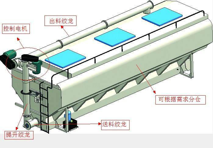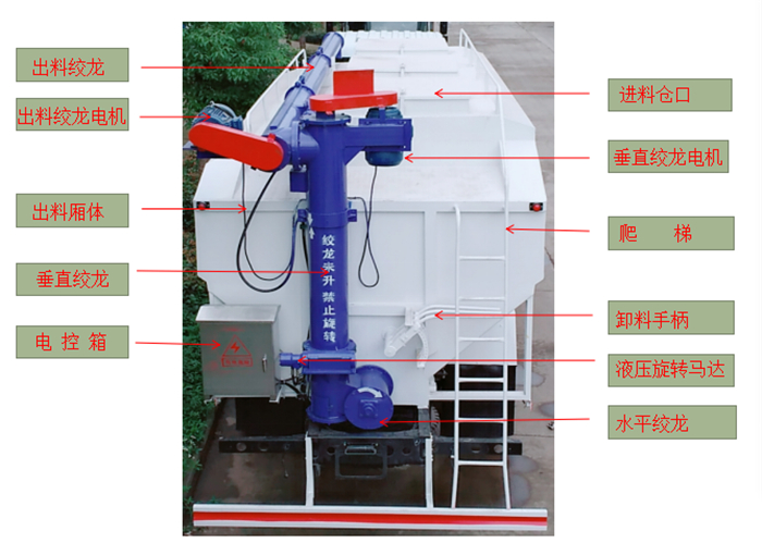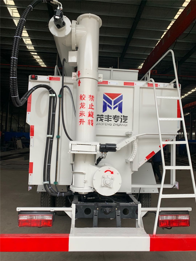 上裝罐體:罐體材質(zhì)采用4mm優(yōu)質(zhì)碳鋼板,整車3條絞龍,通過變速箱帶動取力器取力后帶動各絞龍工作,頂部絞龍用液壓控制舉升,可左右旋轉(zhuǎn)180°。罐體內(nèi)分為叁個倉,可以獨立控制各分倉卸料順序和速度。(備注:此報價為標(biāo)配,國產(chǎn)電機(jī),德力西電柜)